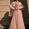 Experience the elegance of our renowned Pleated Tulle Skirt featuring an elasticated waistband and delicate pink satin polka dots on a sheer overlay. Its mid-length design offers a timeless silhouette that gracefully falls around the ankles.